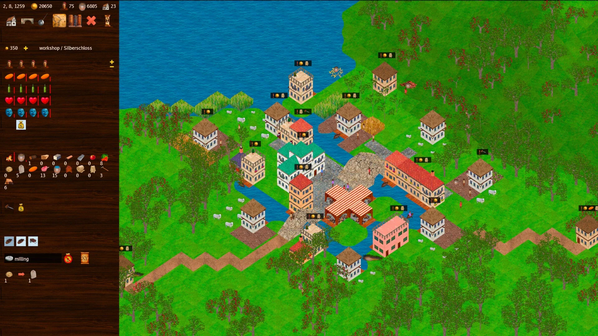 Medville is an indie, single player, real time city builder game. It features complex supply chains of 40 artifacts, a money economy, multiple towns, land and water transportation, designing custom buildings and individually simulated villagers with their own agendas.
