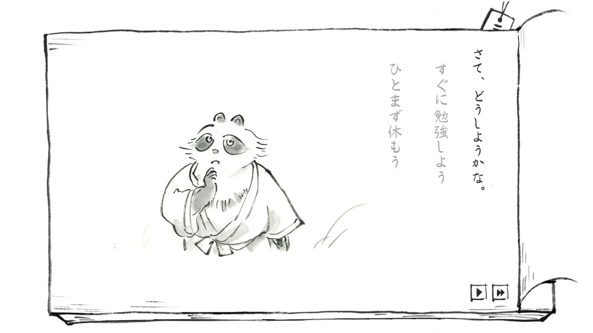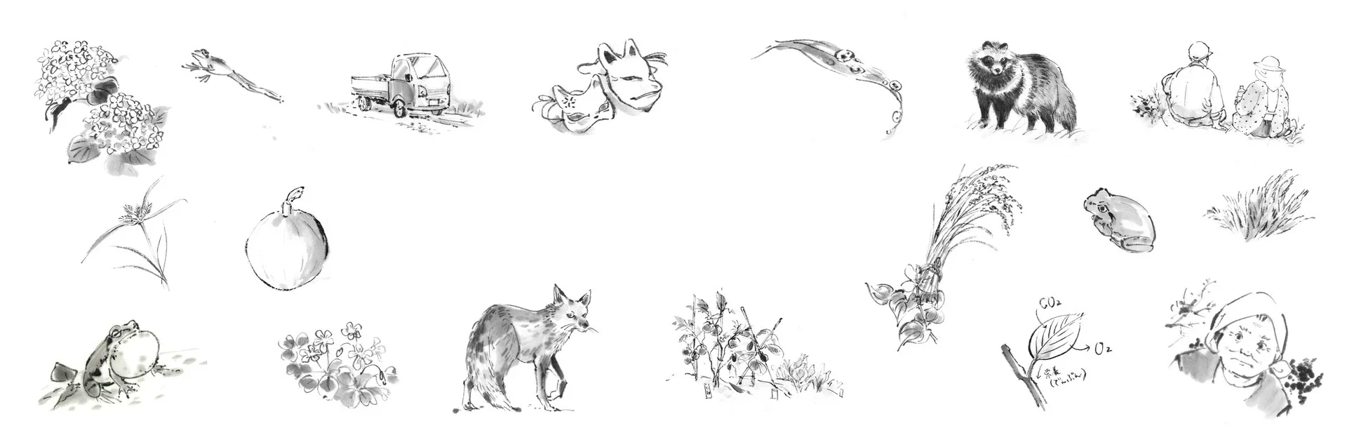 "Satoyama Note: Natsukusa Komichi" is a novel game about the creatures that live in satoyama. Collect illustrated books and take the quiz-style satoyama test. The background music is played live by a shinobue flute, and the world is depicted by hand-drawn ink paintings.