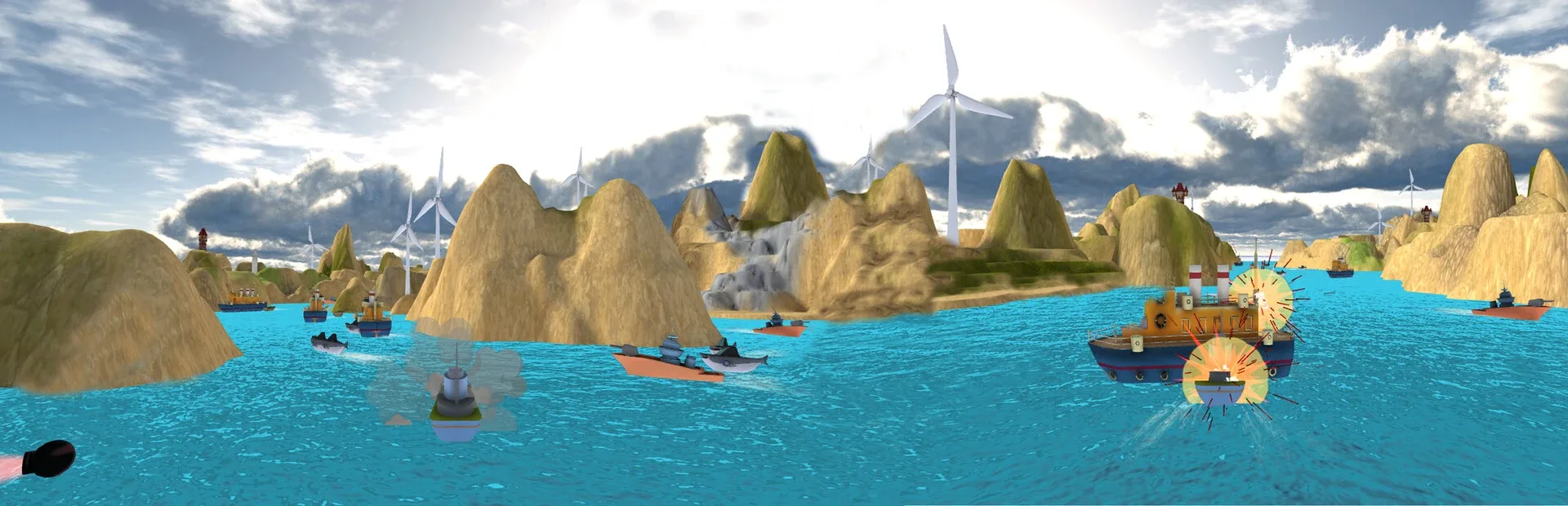 Drive a warship to attack the enemy ships, and finally kill the boss of this level to win.