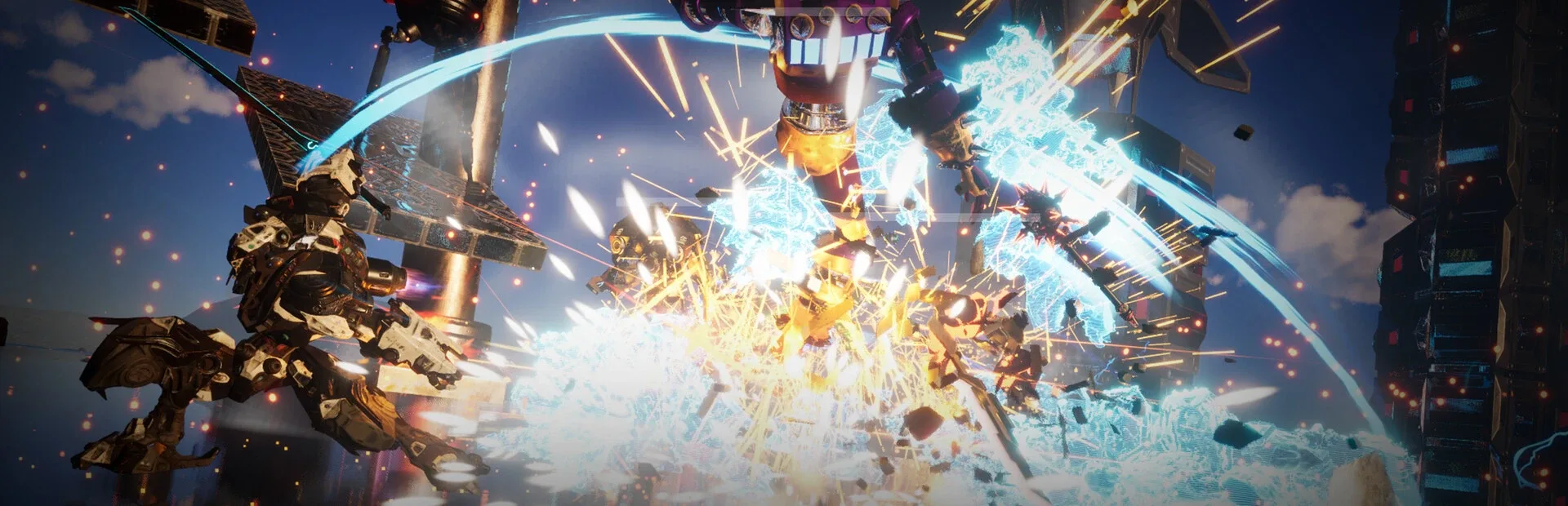Katana Robo fights his way to the top floor of the Robot Tower, which looks like a platformer game stage, to thwart Samurai Robo's ambitious plan to use the Dominion Sphere at the top of the Robot Tower to control the robots throughout the universe.