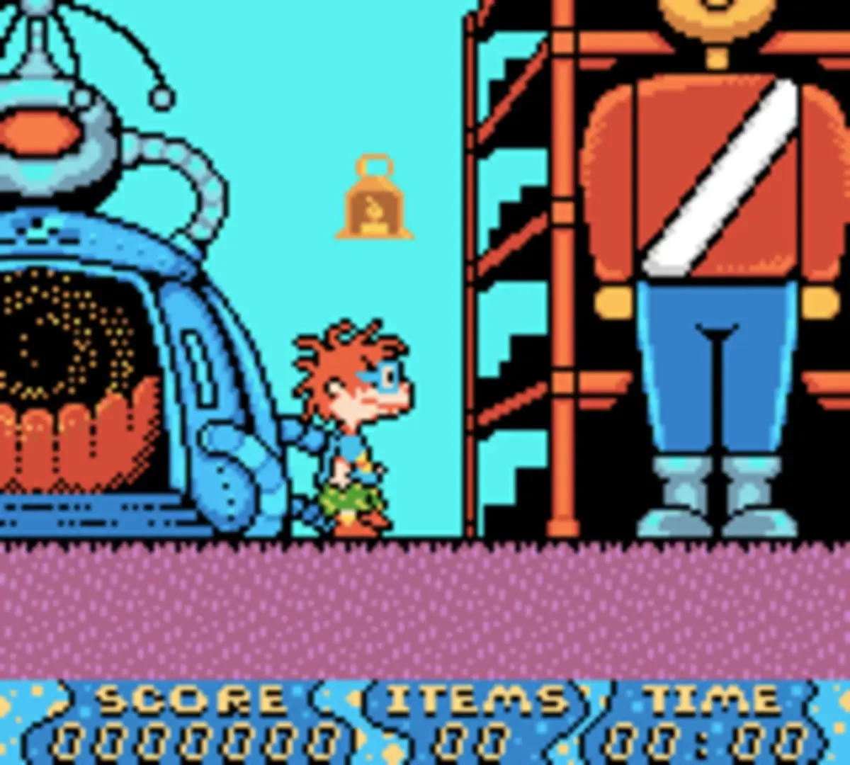 The Rugrats are about to find out that the only thing more exciting than traveling through your own backyard is traveling through time. After discovering a time machine, the kids accidentally scatter themselves throughout history, and you're the only one who can reunite the famous babies with their beloved cohorts. Each of the game's 12 levels puts you in charge of a different character, charging you with tasks like finding a lost toy, locating fellow Rugrats, or tracking down mysterious items. The whole debacle begins when Chuckie won't enter the time machine with the other babies, but he changes his mind as soon as the rest if the gang disappears and leaves him all alone. Chuckie's attempt to track down the others puts him in the 1800s, but none of his friends are there. In fact, Tommy is in ancient Egypt, Angelica is at an old circus, Phil is trapped in prehistory, and Dil is, somehow, lost in space! Can you collect all of the lost items and round up the babies before it's too late?