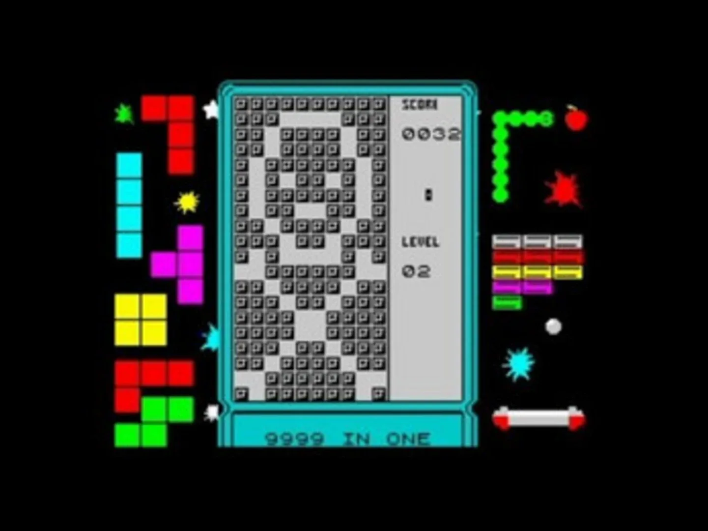 Ah, the 90's... Techno music, arcades, personal computers... and TONS of cheap chinese LCD games. Remember that LCD game that was in each single bazar? The one that had MANY copies of Tetris? Well, 9999 in 1 is a replica of that machine but in your Spectrum! 8 different games packed into a single 48k program emulating the look and feel of these LCD machines, pure 90's retro fun!