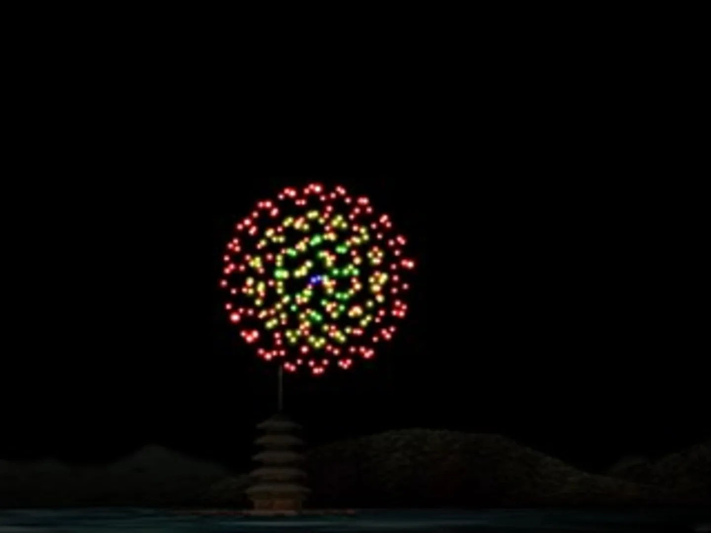 Fireworks are a class of explosive pyrotechnic devices used for aesthetic, cultural, and religious purposes. A fireworks event (also called a fireworks show or pyrotechnics) is a display of the effects produced by firework devices. Fireworks competitions are also regularly held at a number of places. Fireworks take many forms to produce the four primary effects: noise, light, smoke and floating materials (confetti for example.) They may be designed to burn with flames and sparks of many colors, typically red, orange, yellow, green, blue, purple, , silver and gold. Displays are common throughout the world and are the focal point of many cultural and religious celebrations. During the summer in Japan, fireworks festivals are held nearly every day someplace in the country, in total numbering more than 200 during August. The festivals consist of large fireworks shows, the largest of which use between 100,000 and 120,000 rounds (PL Art of Fireworks), and can attract more than 800,000 spectators. Street vendors set up stalls to sell various drinks and staple Japanese food (such as Yakisoba, Okonomiyaki, Takoyaki, kakigori (shaved ice), and traditionally held festival games, such as Kingyo-sukui, or Goldfish scooping. Hanabi Shokunin ninarou 2 is a fireworks simulator. You can enjoy dinamic Full 3D Fireworks! Make your best fireworks show with new functions and camera edits. Waremono, Pokamono, Katamono, Uchidashimono, Shikake... You can easily make almost every kind of FireWorks which you can see in the real Japanese Fireworks show. Your creation comes back to life again with beautiful view. When summer rolls around, the thoughts of the masses turn to barbecues, bikinis, the beach and fireworks. Those incendiary blossoms and blooms which sprout in the heavens and thrill witnesses with bright lights and explosive effects. Hanabi Shokunin Ninarou 2 features a wide assortment of fireworks to design, view, edit and experience on the PS2. Common sorts such as radial explosions and spherical blasts are fairly easy to create but elaborate fireworks may also be crafted which show complete figures, scenes and other elaborate sky theater.