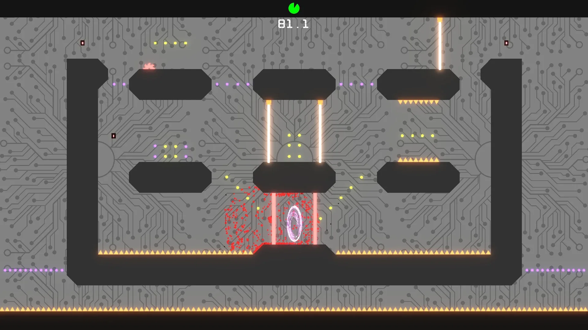 In this modern twist on 2D platformers, make your way through numerous traps and obstacles such as spikes, saws, laser beams, and explosives to reach the goal at the end of each level. Each level has a limited amount of time to complete. So speed is key, or else it's game over.