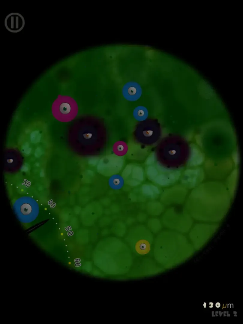 Look through a microscope and discover a small world made of ever expanding cells of 3 colors. Launch a cell against one of the same color to make them both disappear. Launch it against a cell of a different color and a new cell of the third color will be created. But beware! Cells are aging and become sick and dark. They might spread out and contaminate the whole system. Create white cells to help you cure this disease before it’s too late. Try to stay alive the longer you can and beat your score or your friends’ high scores.