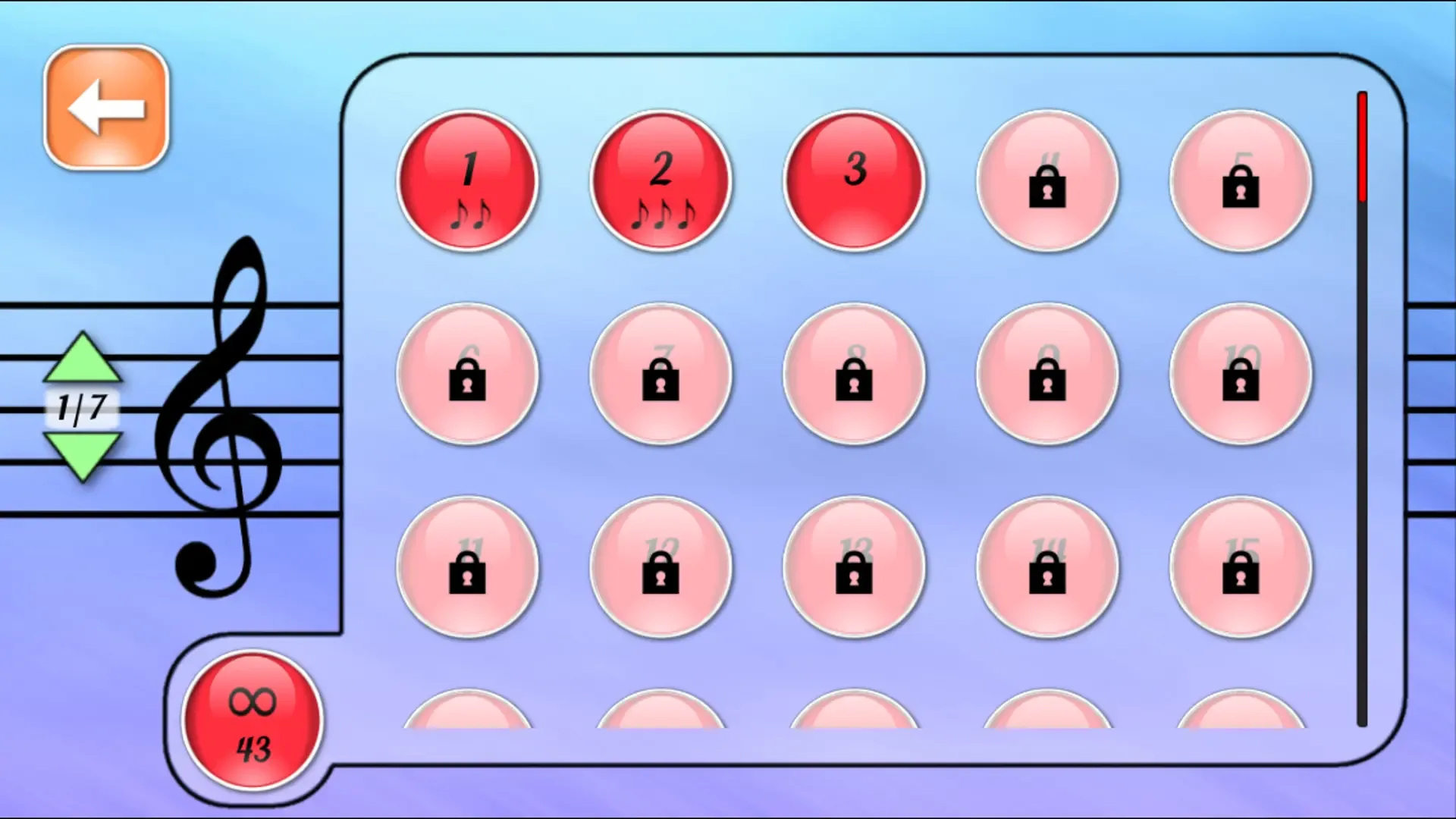 DoSolFa-Lite is a music game designed to learn how to read musical notes. With vibrant graphics, catchy tunes, and an excellent gameplay, it has never been easier to learn how to read musical notes. DoSolFa-Lite proposes 40 levels in treble and bass clef. An special "infinite" level generates notes randomly with increasing speed, and allows the player to continue to progress, even when all the levels have been completed. Highlighted lines have been set up as a guide to help beginners, and small stars twinkle to show the solution when an error has been made. Each note identified is played by DoSolFa, allowing you to familiarize yourself with the pitch sounds. The background music tracks, numerous and varied, complement the pitch sounds to create a genuine musical experience. DoSolFa is played either with solfege (do re mi...) or letters (A B C...).