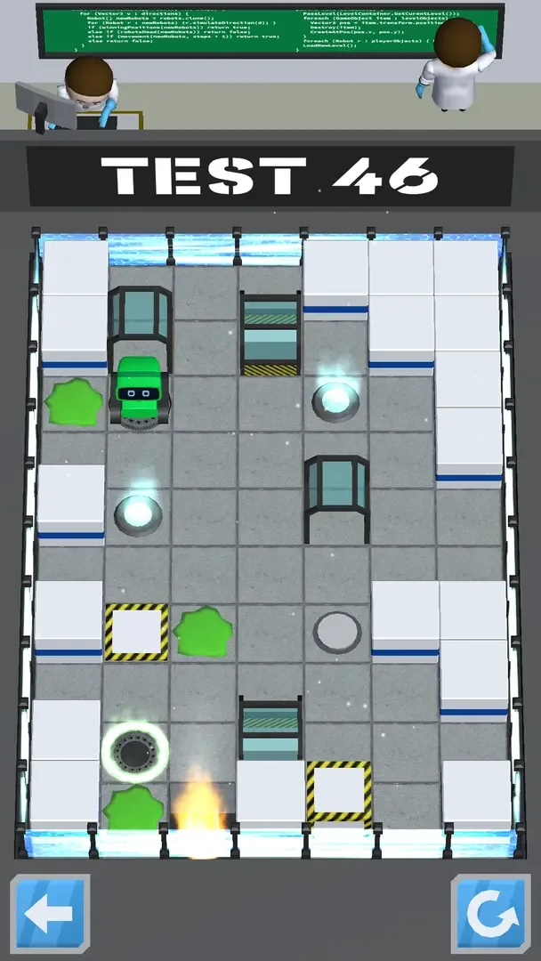 Help our robots finish all the lab tests! A series of instruments and obstacles have been created to develop the intelligence of this prototypes. Guide them to the green platforms by interacting with the blocks to win the levels. Explore how all blocks work and interact, the future of Artificial Intelligence is in your hands!
