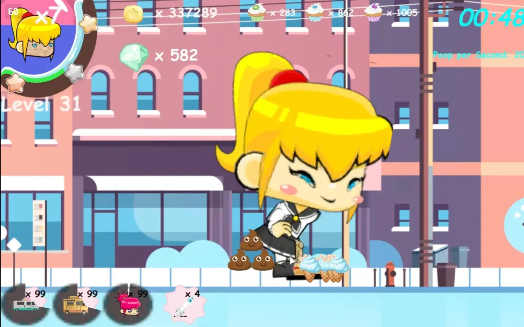 This is the story of Cathy. She is very catty and always wants to look pretty, but she always says mean things. When she walks she poops and it may turn to gold. She needs the gold to buy fillers for her face to look pretty.
