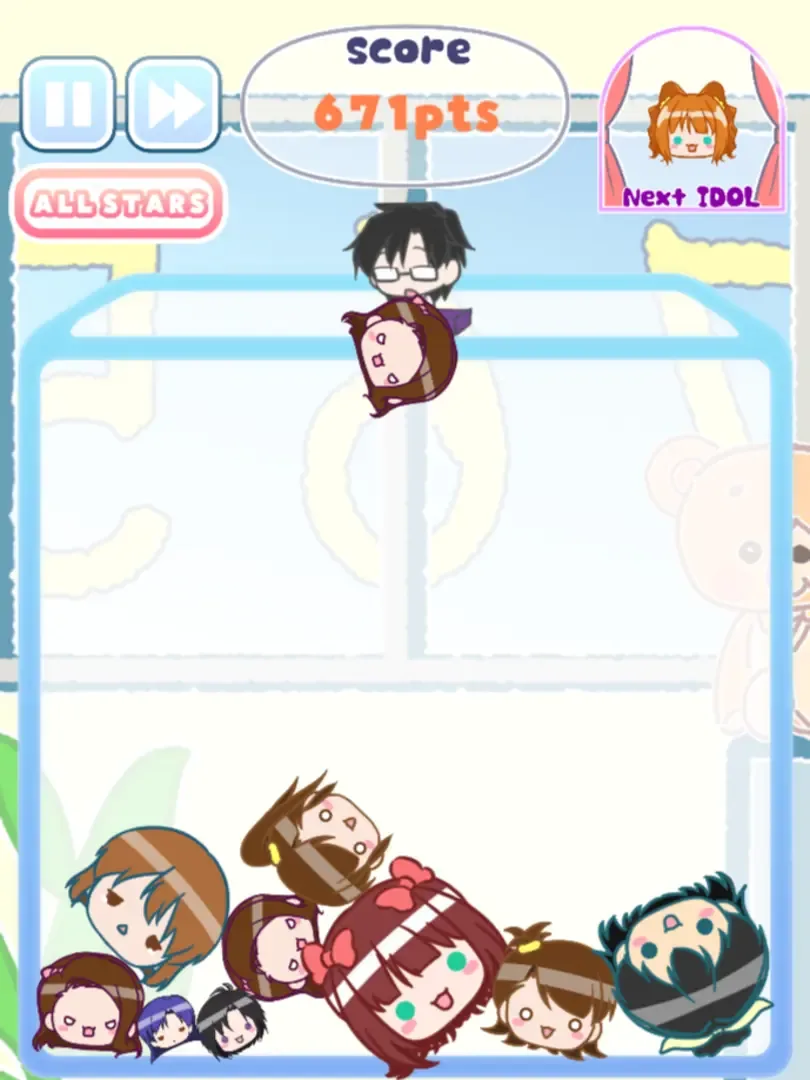 A Suika Game-inspired game featuring characters from The Idolmaster franchise.