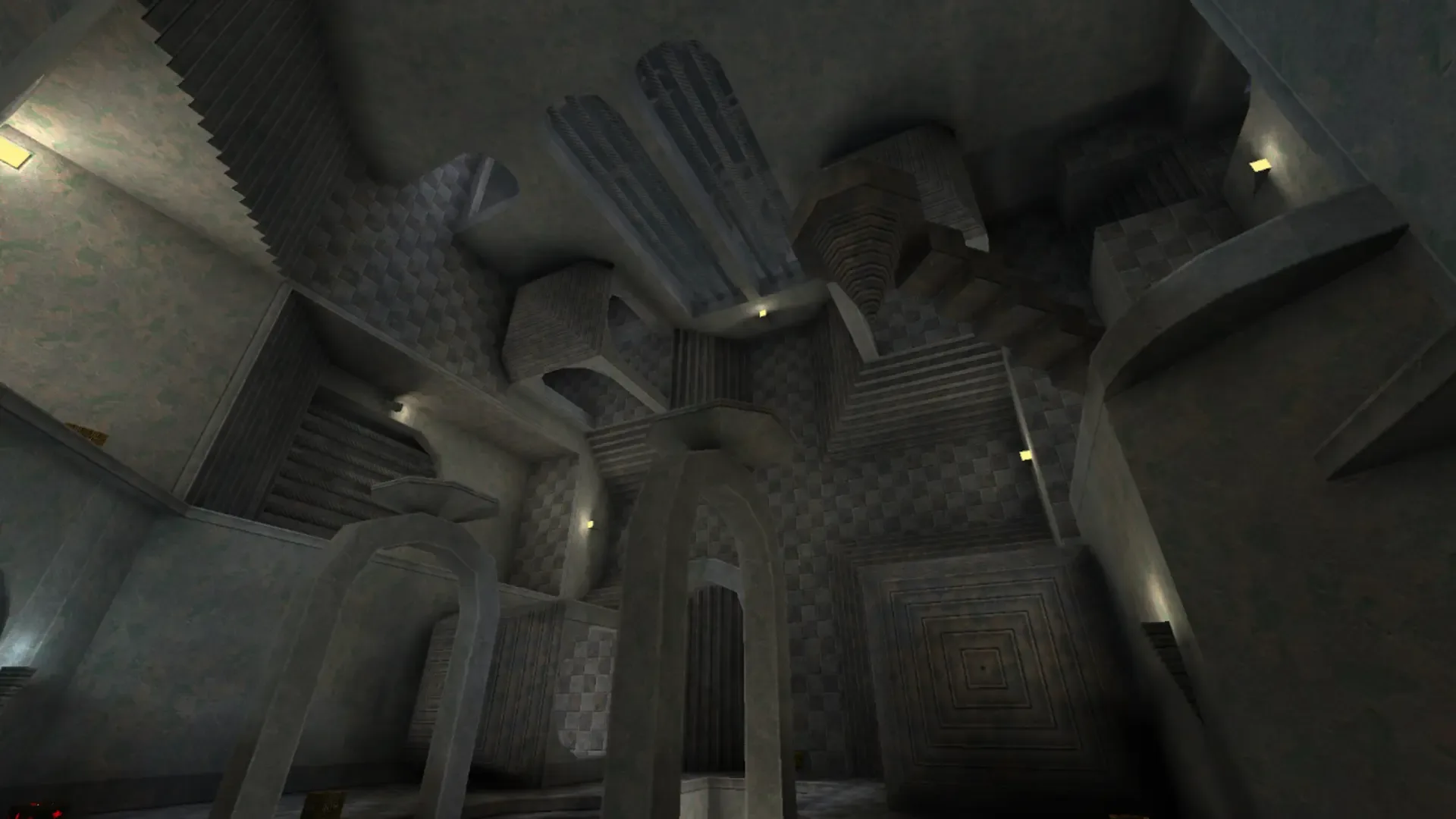 M.C. Escher's Relativity was providing the theme and it's featured prominently in the main area of the map. There is also a progression in which certain areas are only accessible with a certain weapon, similar to what the Metroid games are known for.