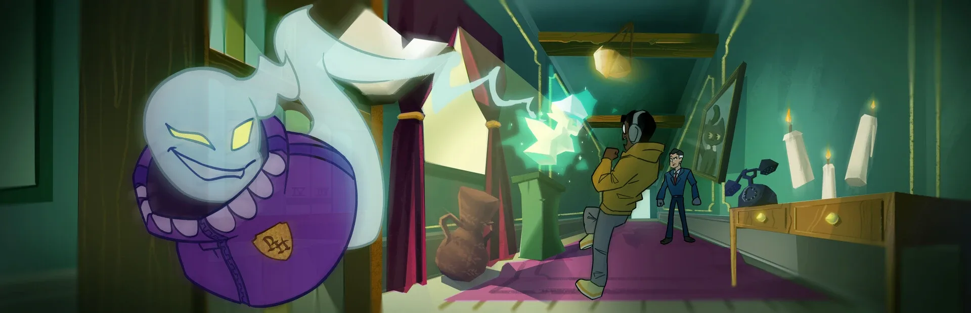 In Manor Madness you take on the role of the ghost Ghustav and unleash mayhem. Ghustav has been accepted to the most prestigious school of Polter High where they will study how to possess objects and fling them across the room. Of course, traditional haunting can't be missed. Turn on any electrical appliances, flick the light switch, or play a spooky tune.