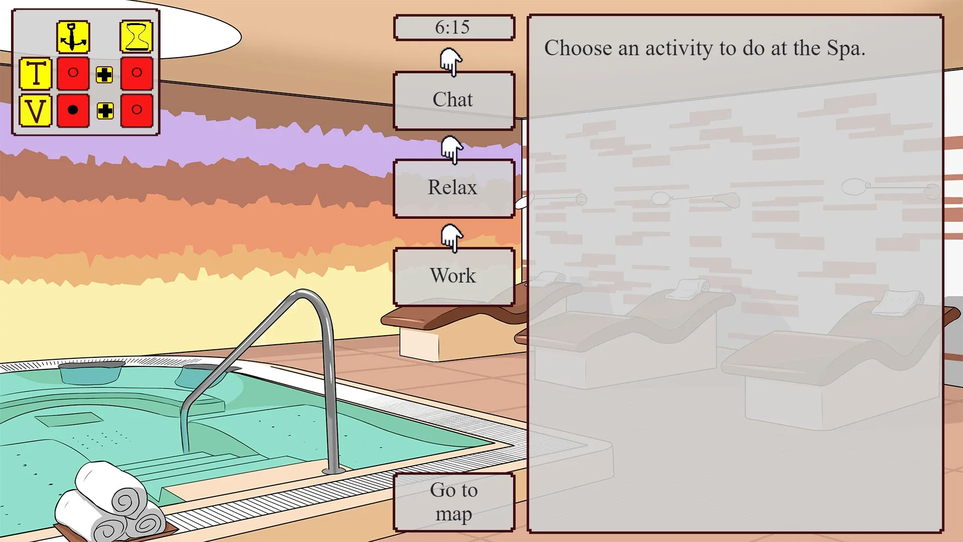 Point and click game, with emphasis on narrative, time management, and luck on the dice!