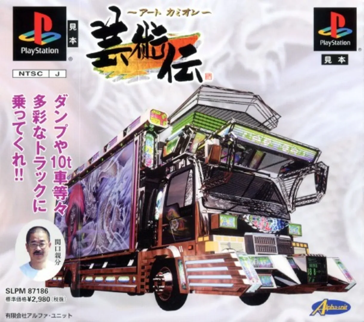 A spin-off game in the Bakusou Dekotora Densetsu series. Art Camion Geijutsuden let the player to doll his truck up with pretty paints, colors and designs and motor off into big-rig races against other decorated behemoths. The game features different game modes, the most important one is the story mode in which the player plays a truck driver and defeating different drives provide him with money that he can use to tune the truck, the game features day and night races. The game also features a 2 players Vs vertical screen mode.
