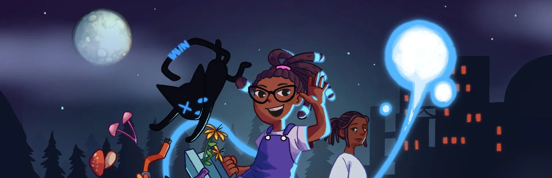 Little Bug is an adventure platformer where you coordinate two playable characters who share a physics based swinging mechanic in real time. Nyah can walk and pick up items, while her spirit light can fly and explore dark areas.