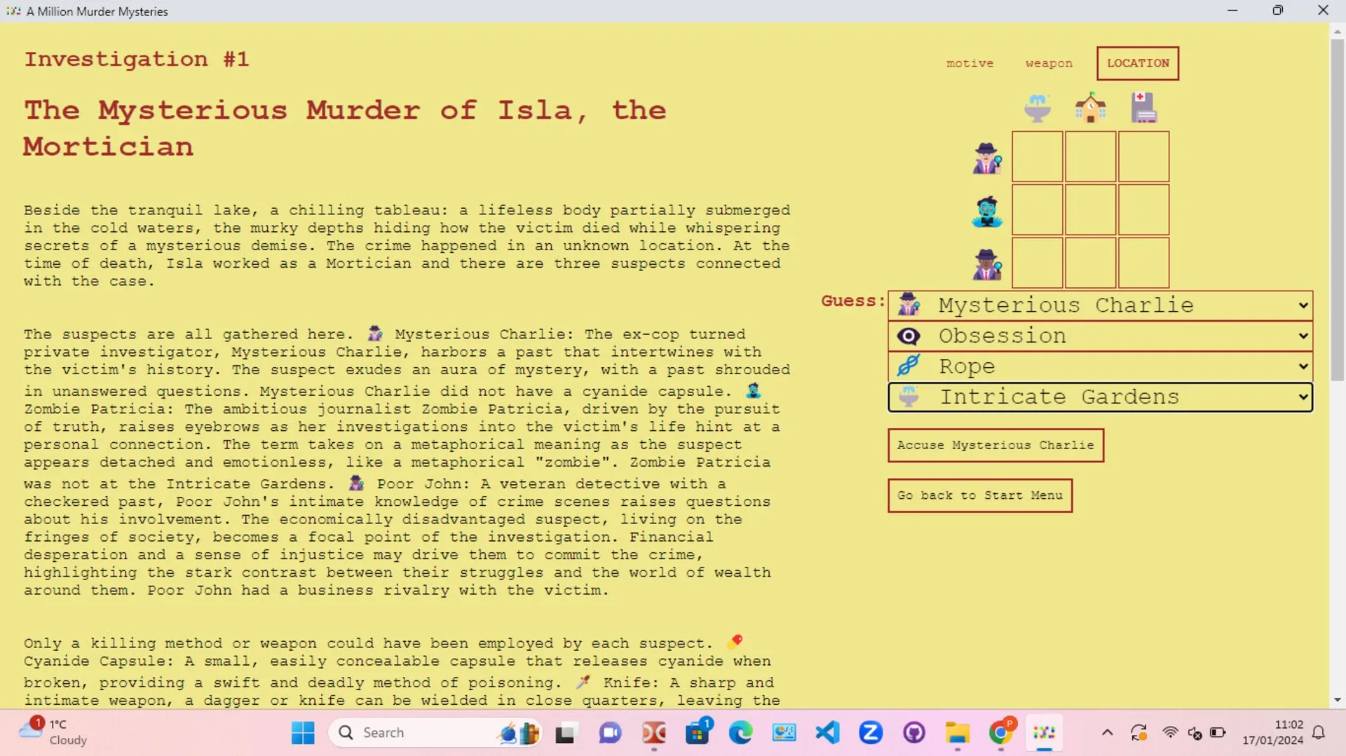 Step into the thrilling world of "A Million Murder Mysteries," where every second counts and every word holds the key to solving a gripping case. This intense text-based detective game challenges your analytical skills and deductive reasoning as you race against time to unravel a million mysteries.