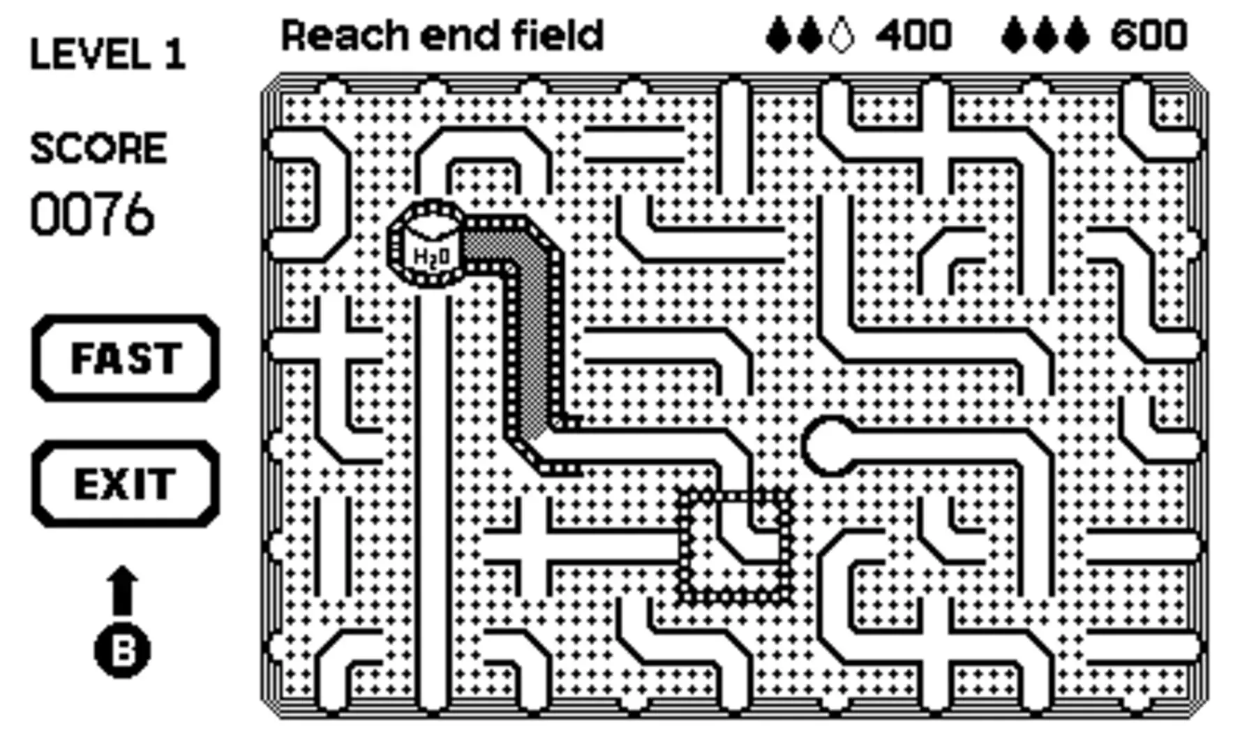 Water Flow is an old-school puzzle game in the tradition of Pipe and Ant Run. Connect the pipes so that the water can flow to the target field. If the playing board is left at an edge, the flow continues on the opposite side and all used fields are renewed. But be aware: the new field can also be a blocked field!
