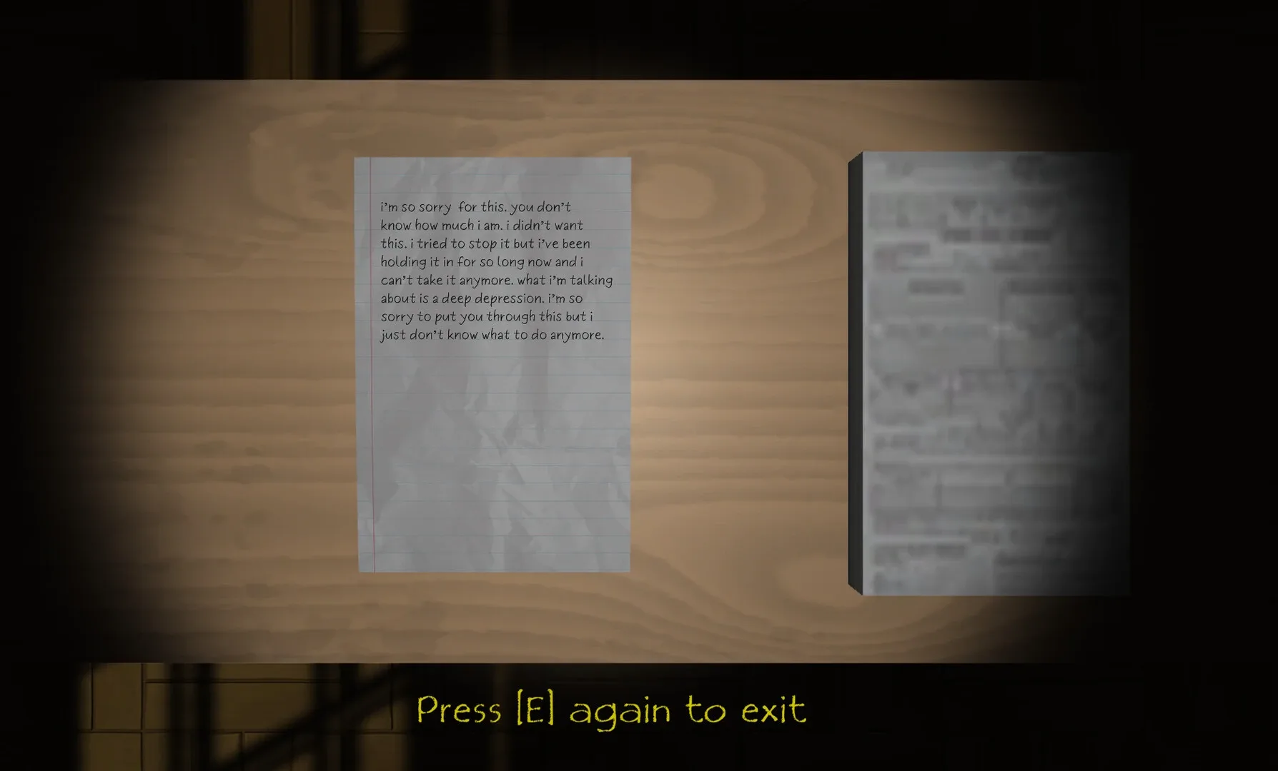Thanatos is a first-person psychological horror mystery game that involves finding clues, solving puzzles, and uncovering secrets to prevent a friend from taking their own life.
