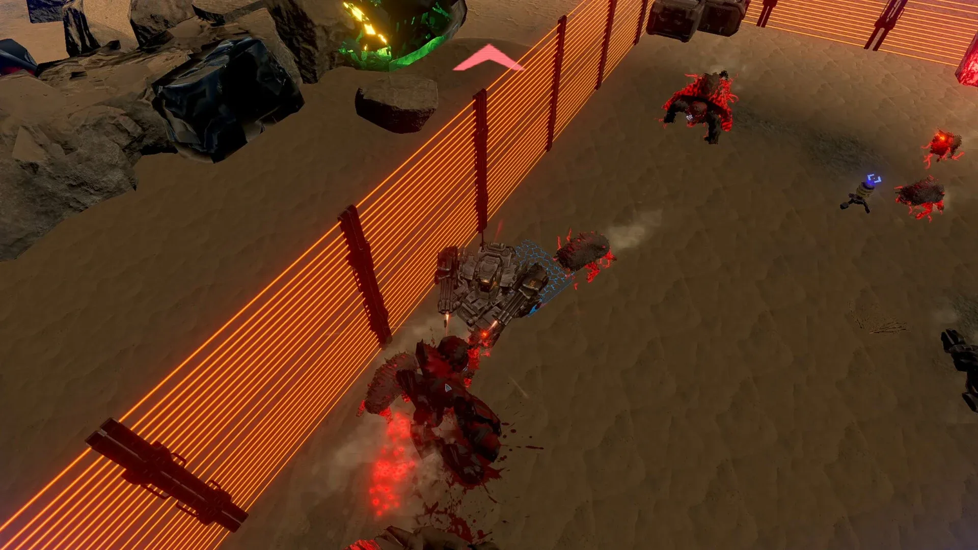 MeatGrinder is a mech-shooter themed shooter where you have to pilot and assemble your own mech on a desert planet to fight against ferocious monsters from outer space.
