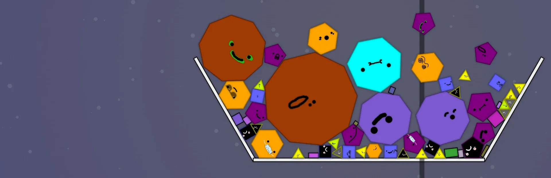 A physics & logic puzzler about merging shapes and traits, similar to Suika games. A triangle might be bouncy, your septagon sick & coughing, or an ennenagon defying the laws of physics.