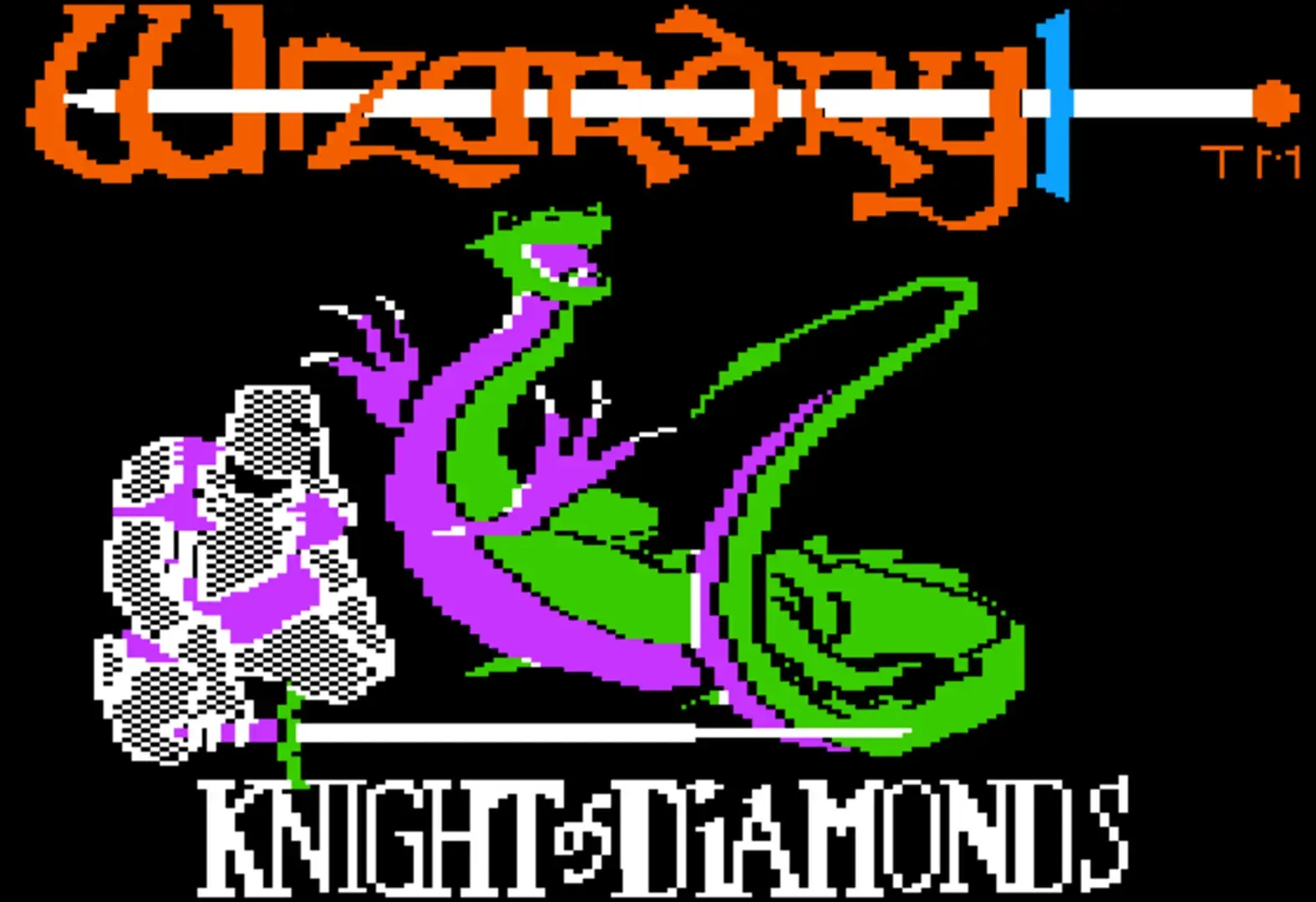 Are you ready to take the next step into the world of Wizardry? A step so dangerous, the mere utterance of a spell can decimate the entire city of Llylgamyn. Knight of Diamonds is the Second Scenario in the Wizardry Master Series, the fantasy role-playing simulation for the Nintendo Entertainment System. In Wizardr Knight of Diamonds, only the bravest may venture through murky dungeons more dangerous than any ever encountered by earthly mortals. Only the most cunning may recover the magical Staff of Gailda and save the city of Llylgamyn.