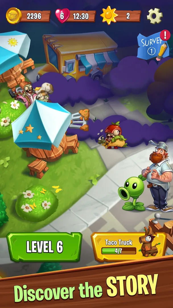 Plants vs Zombies meets Match 3 puzzles - This ain’t your garden variety match 3 game! Grow your match 3 puzzle skills and join Dave on a totally new Plants vs Zombies adventure game. Those wacky zombies are dead set on making life in Neighborville rather dim. It’s time to let your matching puzzle skills shine as bright as the Sun -- because you’ll need to collect it, recruit your favorite leafy friends, stem the tide of yet another quirky zombie horde, and save Neighborville… you know the drill!
