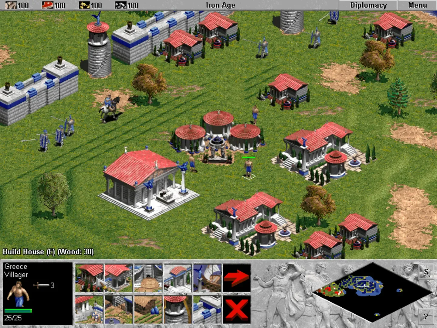 Age of Empires (AoE) is a history-based real-time strategy video game developed by Ensemble Studios and published by Microsoft. The game uses the Genie, a 2D sprite-based game engine. The game allows the user to act as the leader of an ancient civilization by advancing it through four ages (the Stone, Tool, Bronze, and Iron Ages), gaining access to new and improved units with each advance.