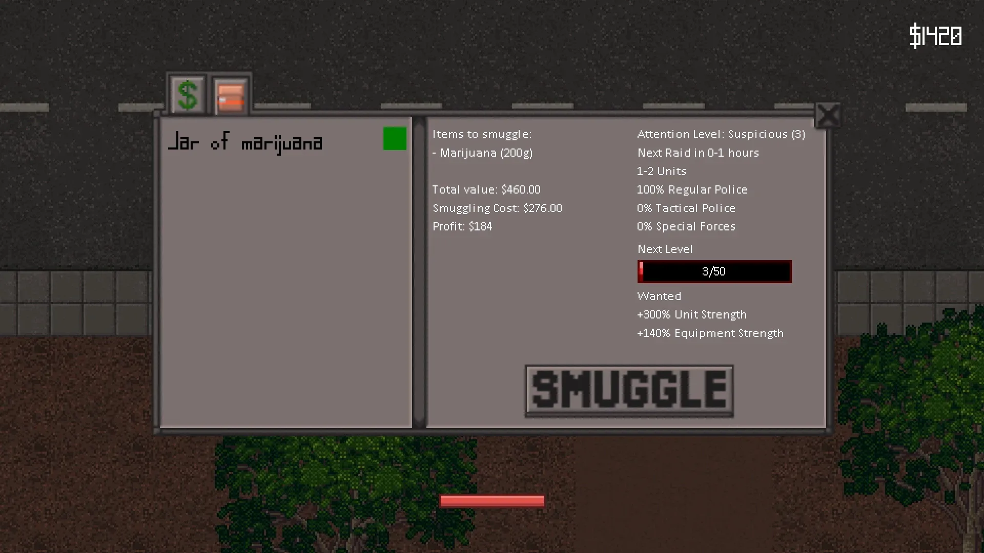 My Drug Cartel is a drug plantation management game with basebuilding and combat elements. Expand your plantation, hire workers, research new drugs and construct buildings. But be ready to face a heavy response by law enforcement by hiring guards, buying weapons and ammunition and building defences.