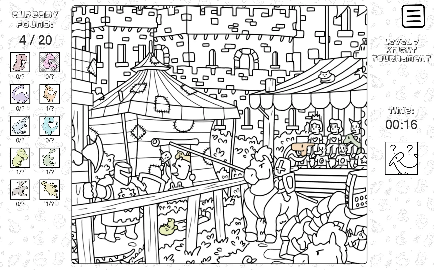 We are back with “There’s No Dinosaurs 2” - a relaxing hidden object point & click game in which your objective is to locate randomly placed dinosaurs amongst nine brand new cozy environments with beautifully hand-drawn graphics. Can you find all the dinosaurs?🦖