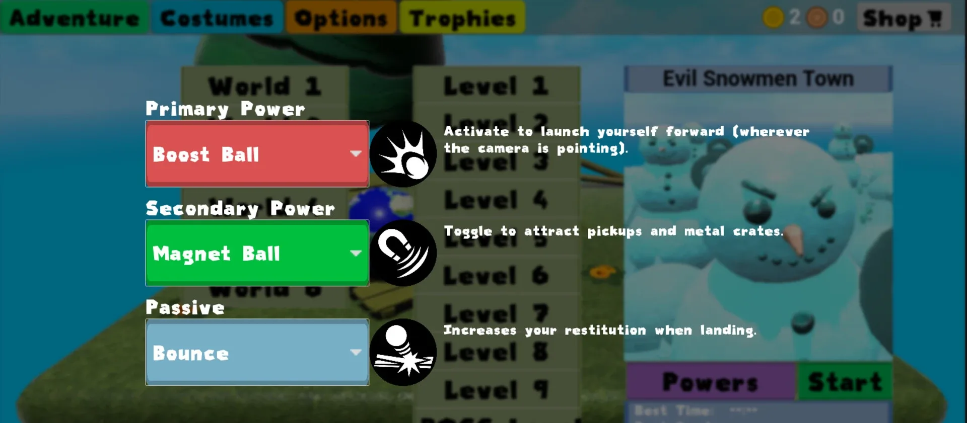 You are a Sphere, you are a Hero, you are... a SpHero! Use your Spherical powers to overcome your enemies and the trials ahead. You will be able to roll faster, bounce higher, throw fireballs or be a rolling magnet! Venture in 60 hand crafted levels and defeat 6 Boxes (bosses).