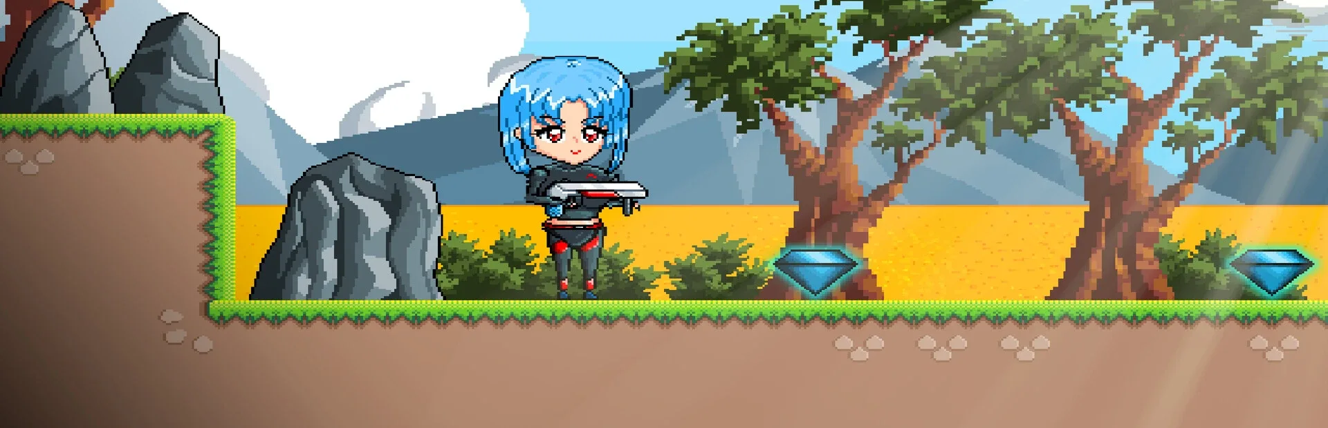 Mika's Battle S is a 2D platform action game based on the story of a warrior who has been commanded to defend Sunshineland territory against the attacks from the enemy soldiers belonging to the Rogho Corporation.