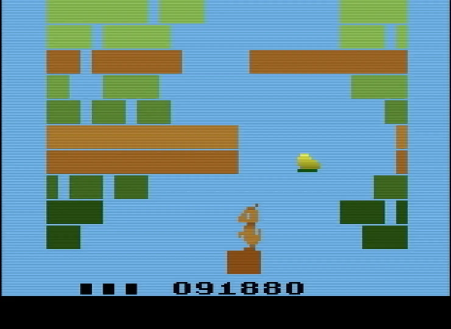 Kelly the kangaroo is enjoying a lovely picnic date with Rosie the rabbit in the picturesque Mossy Valley when - Oh no! The mad scientist Contemptus Mundy, always bitter and jealous of the happy people living on Gaia Gaia Island, has kidnapped Rosie and locked her away in his motherbase in the clouds! It's up to you to help Kelly save her sweetheart before it's too late and that vile Contemptus whisks her away to the stars. Use the joystick to make Kelly hop to the left or right, and hold the fire button to perform a much higher jump to reach her goal. Contemptus Mundy's mothership has one weakness in it's anti affection forcefields and that is the prisoner's favorite food. In this case, strawberries! Kelly must collect six strawberries scattered around the obstacle course in order to free Rosie from her lame and apathetic captor. Kelly will face many dangers along the way, from angry bees, carniverous flowers, agressive bats and automatic flying saucer drones. Most can be knocked out simply by jumping on them, but some are especially treacherous... watch out! If Kelly falls victim to these baddies, she will be knocked back several screens, losing precious time.