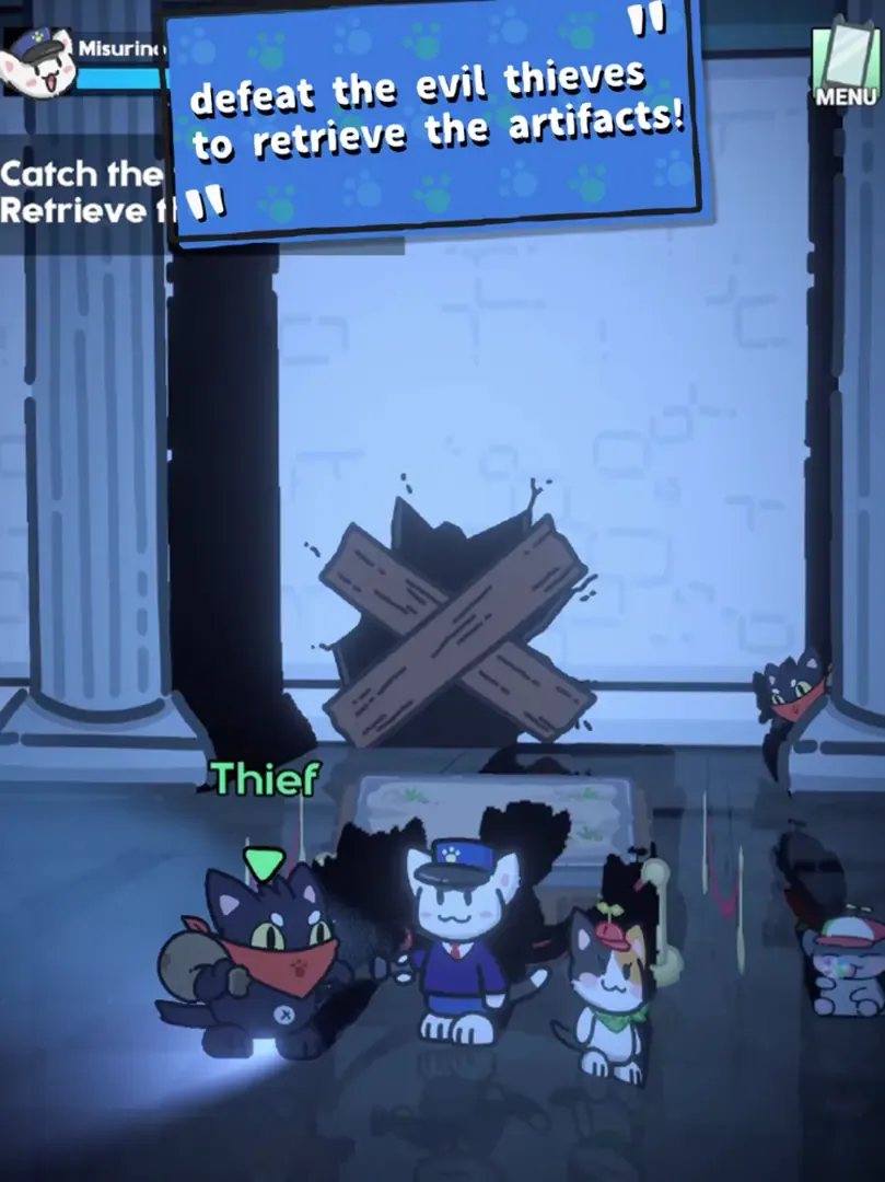Help the young Night Guard Misu to patrol the Meowseum mischievous thief cats! Catch the burglars and engage in thrilling puzzle adventures! Unveil the secret behind the Meowseum artifacts! Tour the Meowseum during your night shift, find the thieves stealing the exhibits and after defeating them, let mysterious kitten Aika help you to restore the artifacts back! What a hard first night of work for Misu! Thank you for helping him!