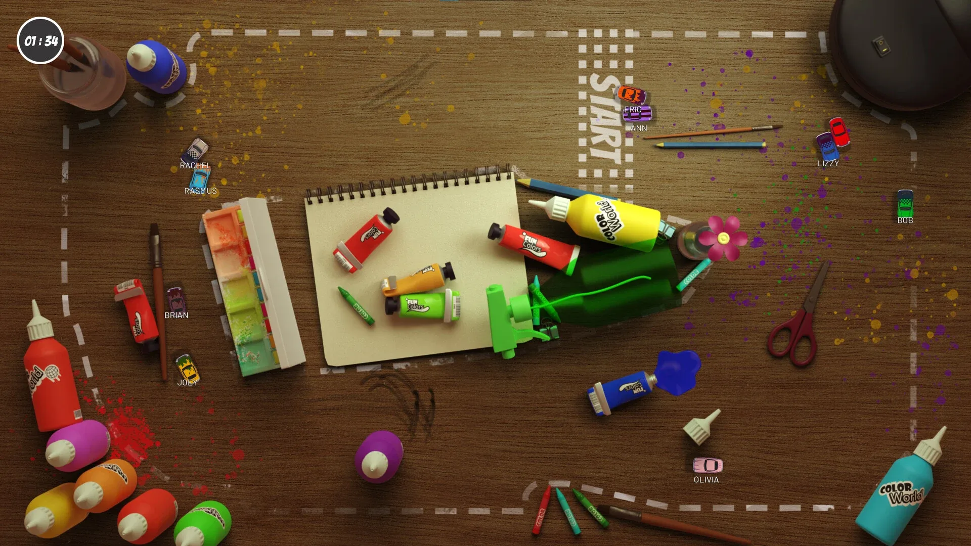 Explore 'Colorful Tracks' with 3 vibrant raceways & 2 thrilling game modes: 'Last One Out' & 'Chased'. Outrace opponents or flee the deadly smoke!