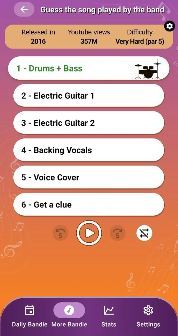 A daily guessing game in which players aim to determine a mystery song using a limited set of the component tracks. Every incorrect guess will provide more information to help players identify the mystery song.