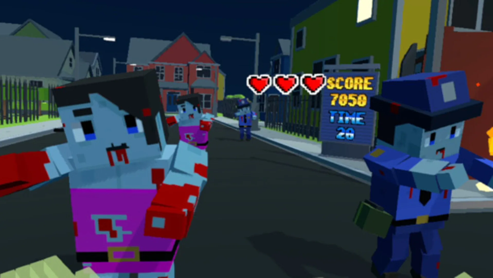 Shoot Voxel zombies in VR! Utilize an arsenal of weapons to eliminate the approaching brain-hungry zombies. Don't be fooled by their cute appearance! Resilient zombies, helicopters and huge bosses are closing in to seal your doom. Can you survive the Voxzombocalypse?