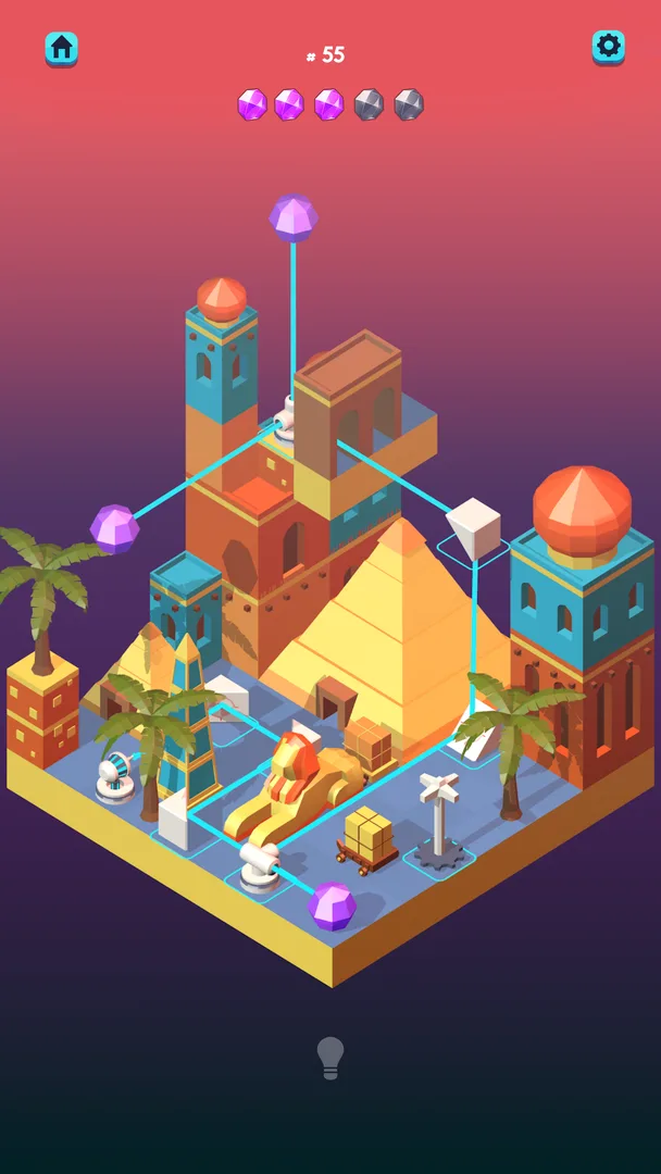 Rotate pieces, explore different perspectives, and manipulate unique objects to establish a clear laser-beam connection and illuminate the sacred gems.