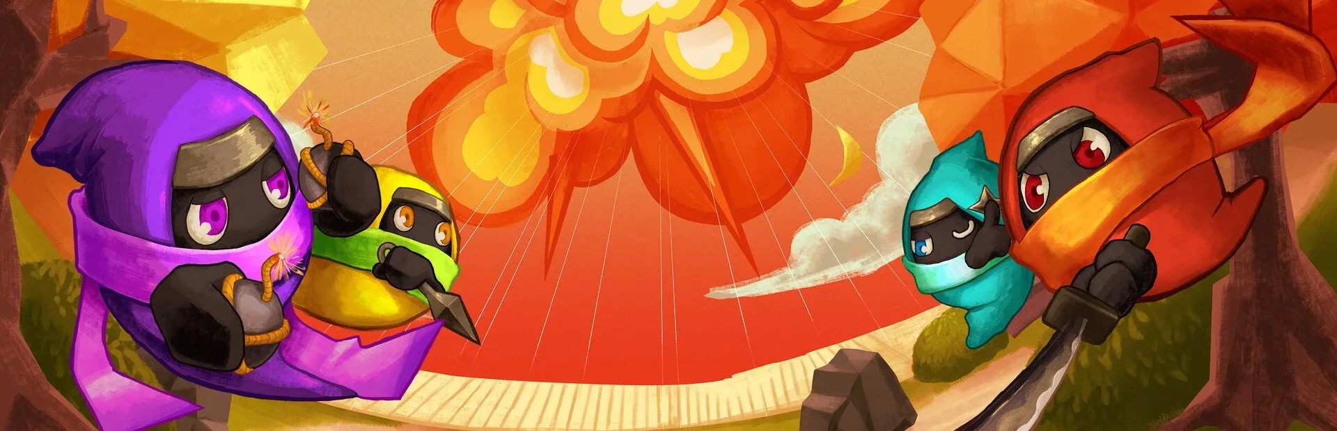 "Ninjam! is a multiplayer action game for up to 4 players where cute ninja characters move freely and compete against each other on a 3D map."