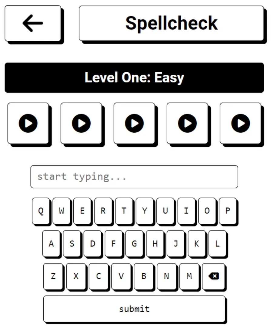 Spellcheck is a daily challenge game styled like a spelling bee, where players are given an audio reading of fifteen different words with their definitions and etymologies, and must attempt to spell them correctly.