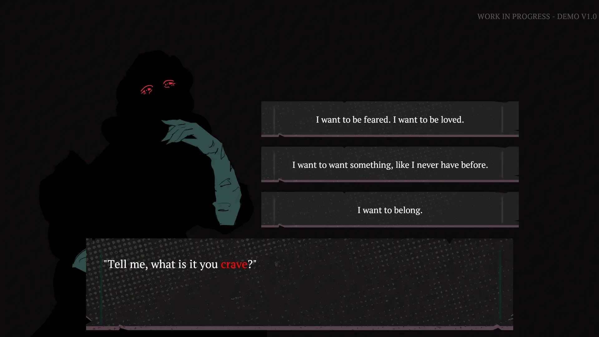 The Ruby Court is an interactive fiction game that takes inspiration from 90s and 2000s vampire fiction, with themes about conformity/the queer experience. And blood. Lots of blood.