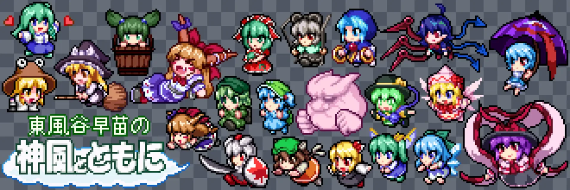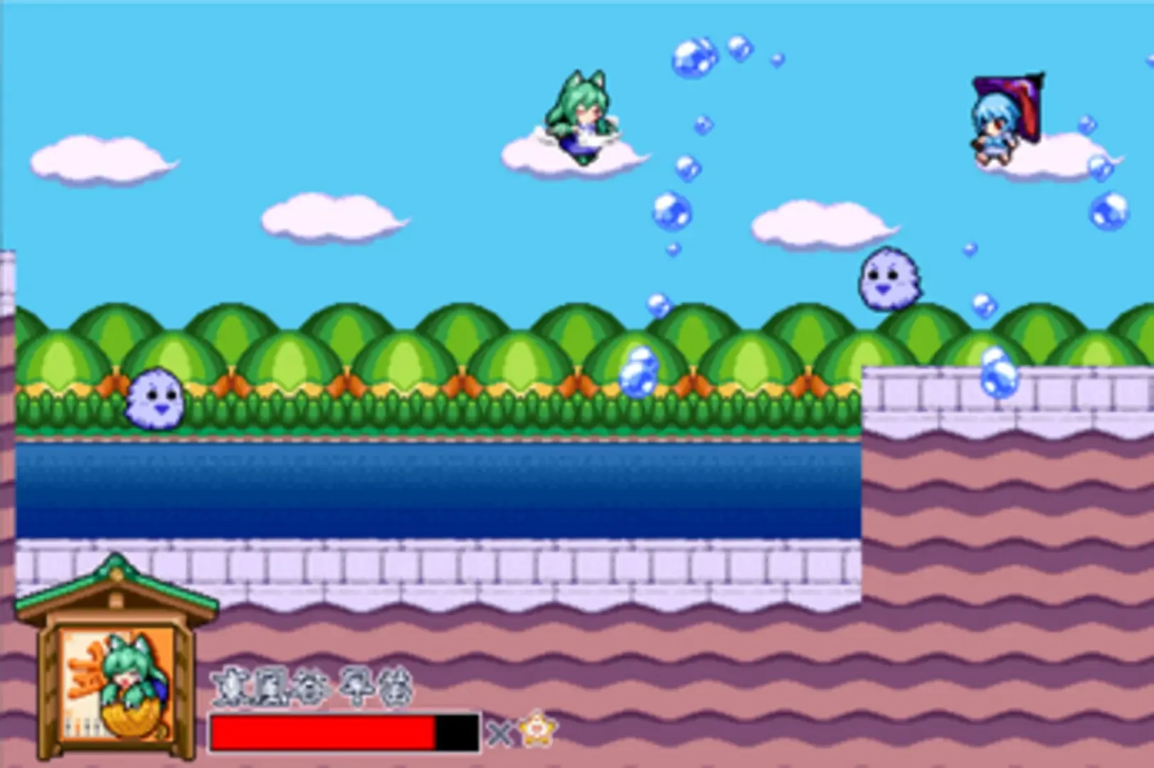 This is a remake of the old version. Sanae has Kirby's signature method of dispatching enemies by using the ability of inhaling with extreme power. By pressing X button repeatedly, Sanae is able to fly for as long as she likes to reach higher platforms or to find secret item locations.