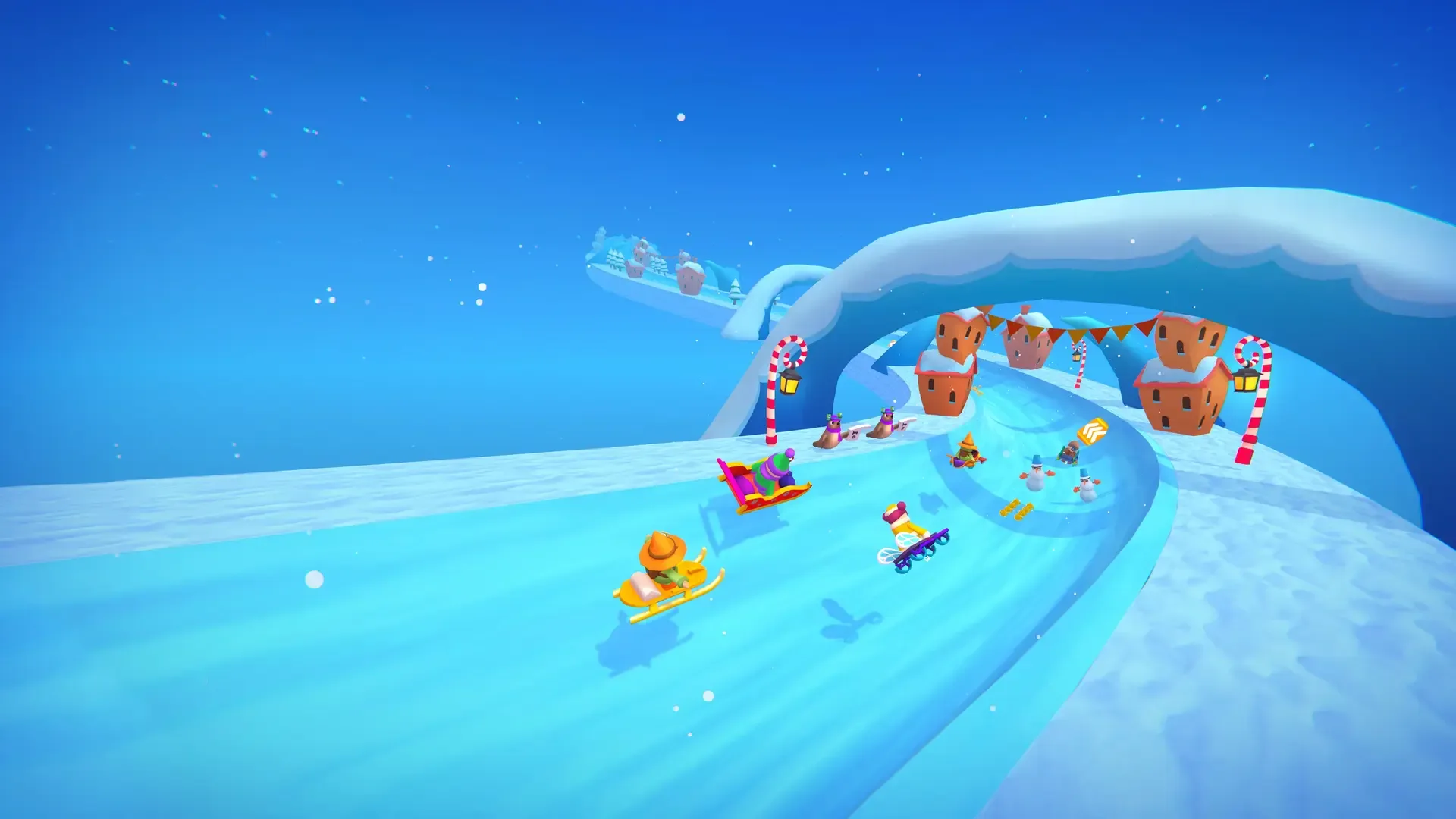 Discover incredible winter sled races on exciting tracks against other racers!