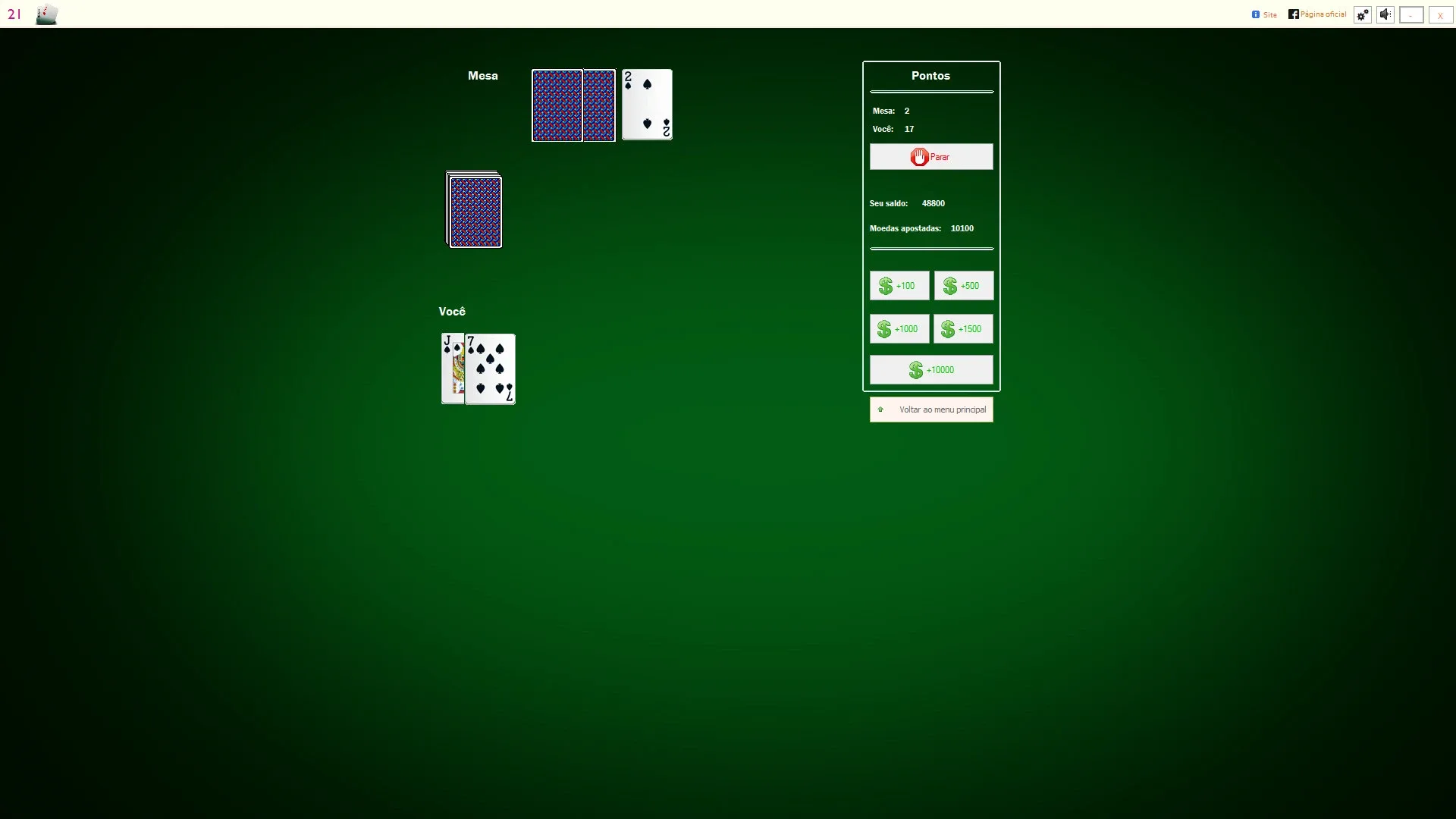 Twenty-one is a famous card game where you must go measuring and buying cards who get closer to 21 wins, however, if you pass 21, you lost!
