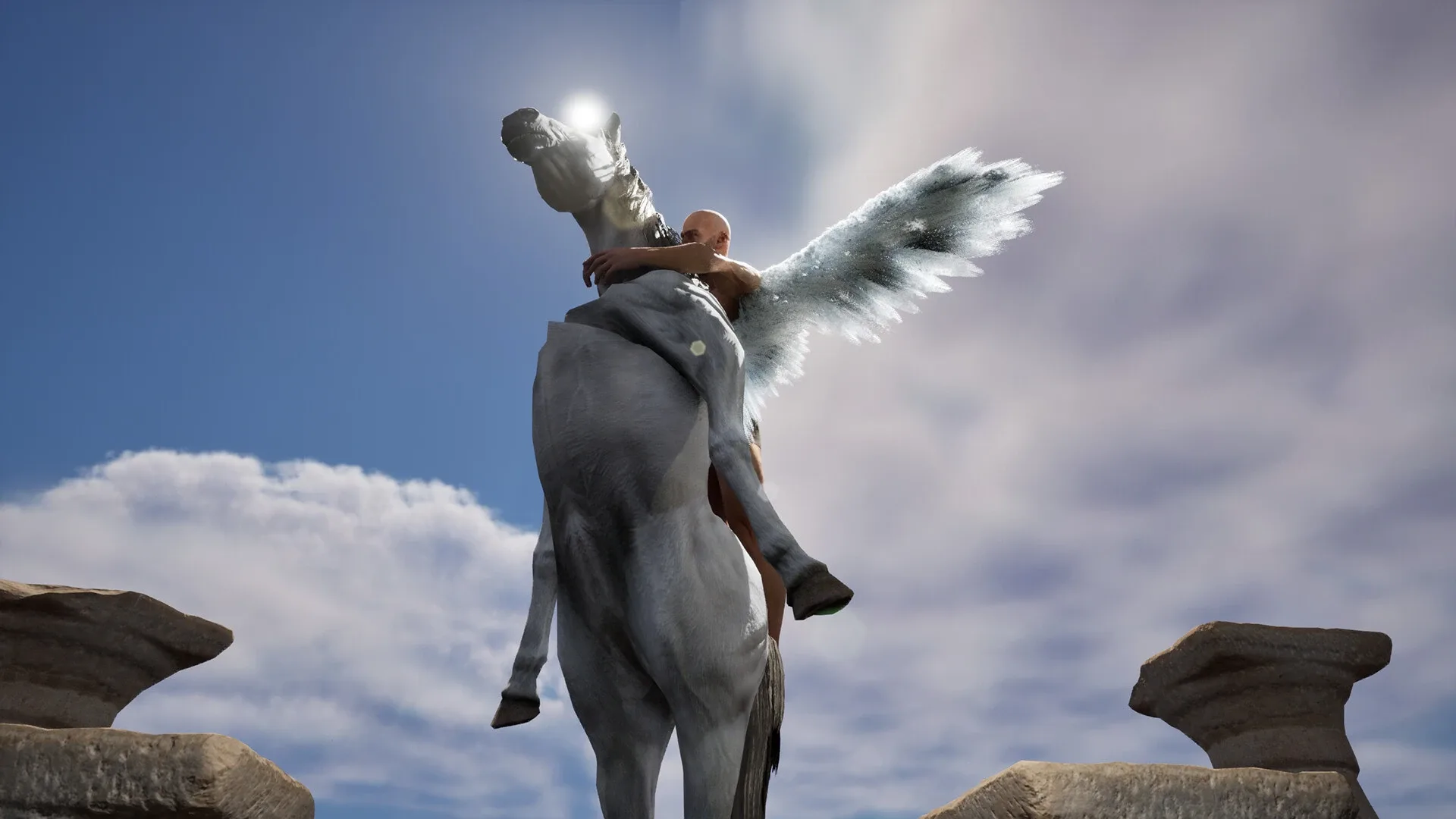 You are Bellerophon, a hero who dreams of becoming a god and rises to the heavens and beyond. Overcome obstacles and trials to reach the heavens and become a god! But for some reason, Pegasus is the only one who seems excited.