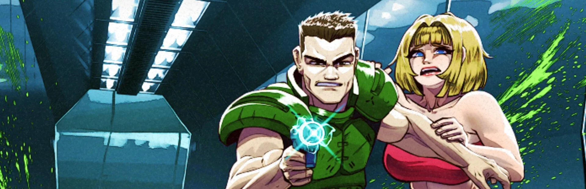 Planet DOS is under attack by Space Aliens, DOSMan needs to fend them off and defend his home planet.