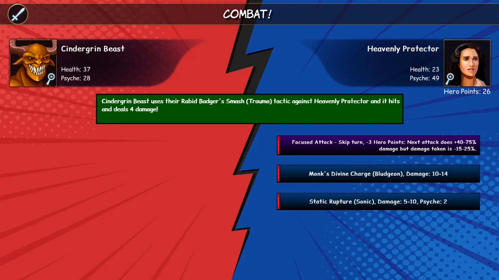 A strategic turn-based game where you play a superhero in a randomly generated world. Battle villains, play side games and experience many different adventures with lots of choices and variation.