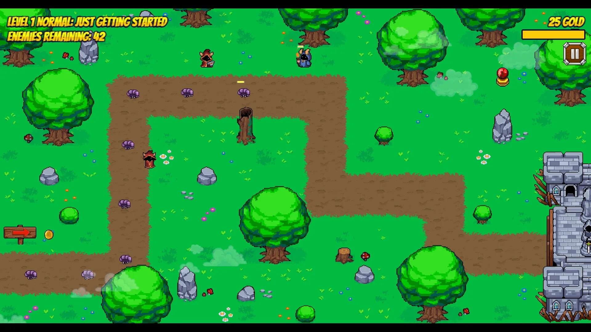 A tower defense game filled with 15 varied levels across 7 biomes and 14 unique monsters with 3 increasingly harder difficulties to challenge even the most experienced of tower defense gamers lurking in their strongholds.