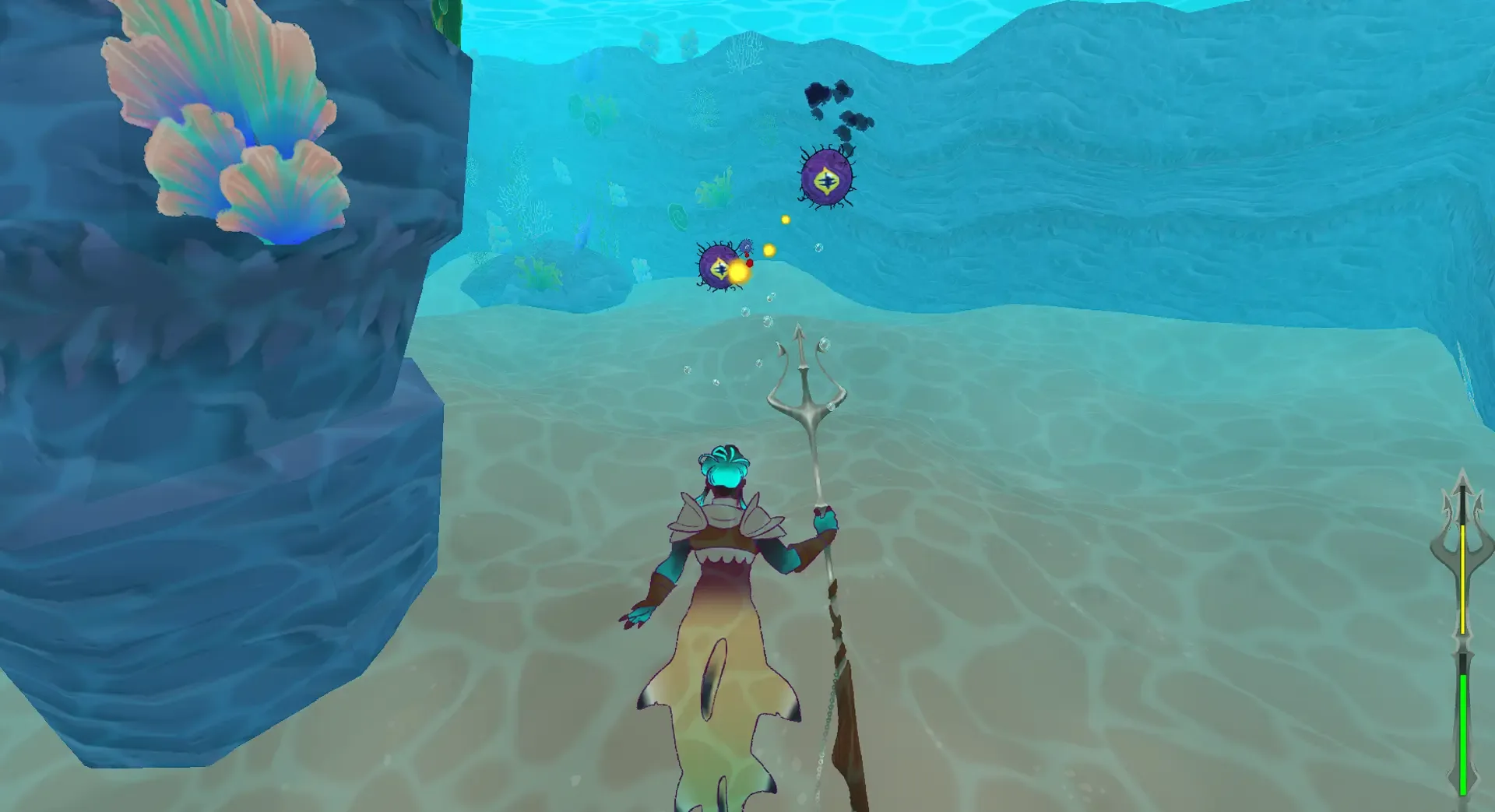The lemon shark tailed mermaid warrior Kaisa is out on her daily patrol when she notices that the sea is somehow... upset. The balance of nature has been disturbed, and monsters of the deep have been let loose into the salty waters. On top of that, a nearby research submarine is broadcasting an emergency signal. Kaisa sets out to investigate, and hopefully find answers and solutions. Restoring the balance of the ocean is up to her!