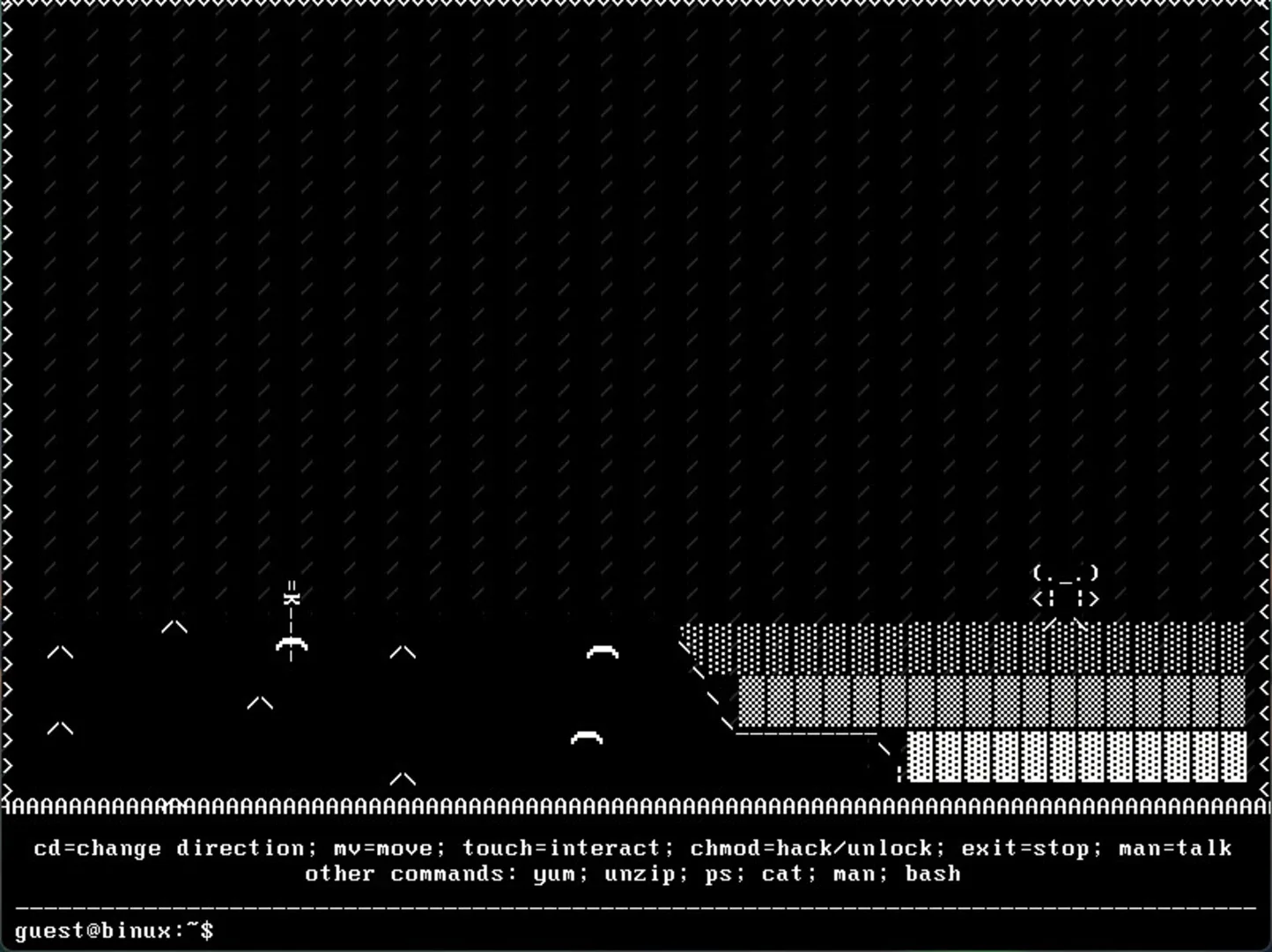 #!/bin/bash is a typing adventure game using linux terminal commands as controls. Yum some cake, touch some loot and bash those enemies!