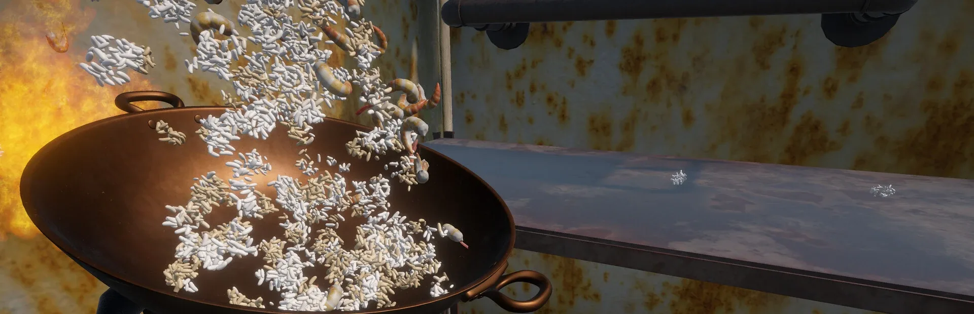 Fried rice————Wok stir-frying————Rice dynamism realized by physics calculation! Complete the best fried rice by using various ingredients!