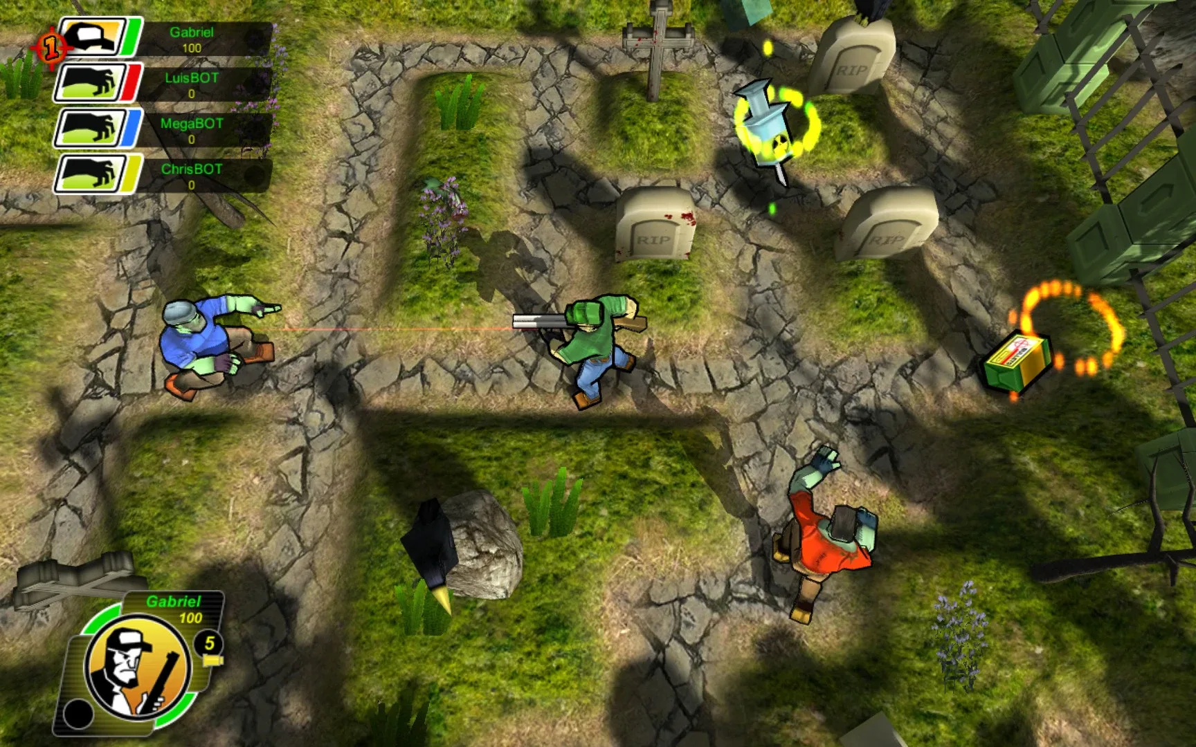 Enjoy a different and twisted way for playing zombie games. Play as hunter exploring mazes full of zombies for a zombie slaughter, but be careful, only touch one of them and you will swap roles. Play as zombie to chase the hunter and start the hunting again. Experience this dynamic game play where you'll become the hunter or hunted on different and crazy modes for intense single and multiplayer action. And of course, you will have several useful items for your journey ... but remember, don't touch the zombies!